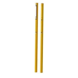 Bezodciągowe słupki do siatkówki plażowej z aluminium 80×80 mm, malowane proszkowo na żółto. Regulacja wysokości siatki 106–245 cm, zgodność z normą FIVB. Montaż w tulejach. System naciągowy na szynie zewnętrznej.