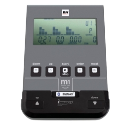 Spinning-Bike 130x59x116 cm, Gewicht 57 kg, max Benutzer 130 kg. Schwungrad 20 kg, doppelter magnetischer und mechanischer Widerstand, Poly-V-Riemenantrieb. Sattel und Lenker vertikal und horizontal verstellbar, SPD-Pedale, Flaschen- und Tablet-Halter, Transportrollen. LCD-Display, 12 Programme, Fitness-Test, HRC, Bluetooth.