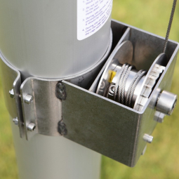 Aluminiowa klatka do rzutu dyskiem o wysokości 5 m, bez kotew, z anodowanymi słupami, siatką ochronną i systemem samoblokującym. Montaż bez użycia dźwigu w 3–4 osoby. Certyfikat IAAF.