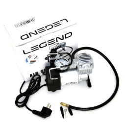 Legend 1-Zylinder-Universalkompressor mit Manometer, netzgespeist 230V. Maximaler Druck 150 PSI, Leistung 35 L/min. Kugelnadel, Fahrrad- und Schwimmbeckenspitzen im Lieferumfang enthalten.