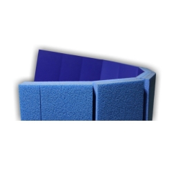 2 m breite und 45 mm dicke Gymnastikbahn aus mehreren Lagen chemisch vernetztem PE-Schaumstoff (30 kg/m³) mit teppichartigem Belag. Erhältlich in Standard- oder gekerbter Ausführung.
