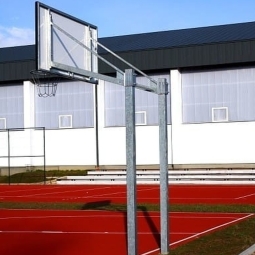 Jednosłupowy zestaw do koszykówki z tablicą epoksydową 180x105 cm i cynkowaną obręczą. Konstrukcja cynkowana ogniowo, mocowana na stałe. Wysięg do wyboru: 1,2 m, 1,4 m, 1,6 m. Opcjonalnie mechanizm regulacji wysokości tablicy. Certyfikat PN.