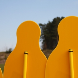 Kippbare Fußball-Trainingswand, bestehend aus 5 Figuren. Leichtes, tragbares Design mit Flex-System, das nach dem Aufprall in die Ausgangsposition zurückkehrt. Fixierung mit Stiften.