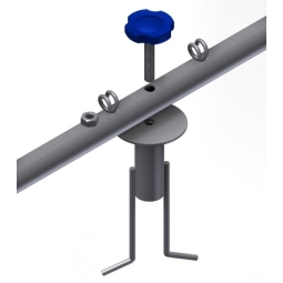 Plattenmarke für die Montage eines Tores in einer Sporthalle zur Befestigung einer quadratischen Profilstruktur. Verwendet in Innenanlagen. Für die Montage eines Tores werden vier Stück benötigt. Inklusive Befestigungsschraube mit Drehknopf.