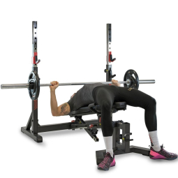 Bank mit 4-stufig verstellbarer Rückenlehne und 3-stufiger Sitzfläche für eine Vielzahl von Krafttrainingsübungen mit der Möglichkeit der Erweiterung. Ausgestattet mit Ständern mit Stahlkonstruktion, 6-facher Höhenverstellung und J-Hakengriffen. Abmessungen 65x123,5x169 cm, Gewicht 40 kg, maximale Belastung 150 kg.