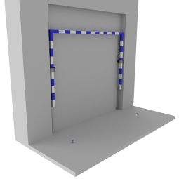 - In Hallen, in denen der Platz begrenzt ist, werden auch an der Wand montierte Tore verwendet. Dabei handelt es sich um Modelle, die mit Stahlwinkeln direkt an den Hallenwänden befestigt werden. Die Möglichkeit, die Tore zur Seite zu klappen oder an die Wand zu heben, vergrößert die nutzbare Fläche der Halle, was besonders in Einrichtungen wichtig ist, in denen die Tore regelmäßig abgebaut oder versetzt werden müssen, z. B. für andere Sportveranstaltungen. Diese Modelle werden bevorzugt, wenn die Endlinie des Handballfeldes weniger als 50 cm von der Wand entfernt ist, was die Verwendung von Standardtoren mit Bögen unmöglich macht. Die Arretierung der Tore im ausgeklappten Zustand, z. B. durch die Befestigung der unteren Halterungen an Bügeln im Boden, gewährleistet die Sicherheit während des Spiels, und das Zusammenklappen der Tore ermöglicht eine optimale Nutzung des Hallenraums.