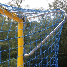 Fußballtore 5 × 2 m, Aluminium, in Hülsen montiert. Hergestellt aus 120 × 100 mm Profil mit doppelten Verstärkungsrippen. Eloxierte Oberfläche. Netzbefestigung mit UMOS-Halterungen.